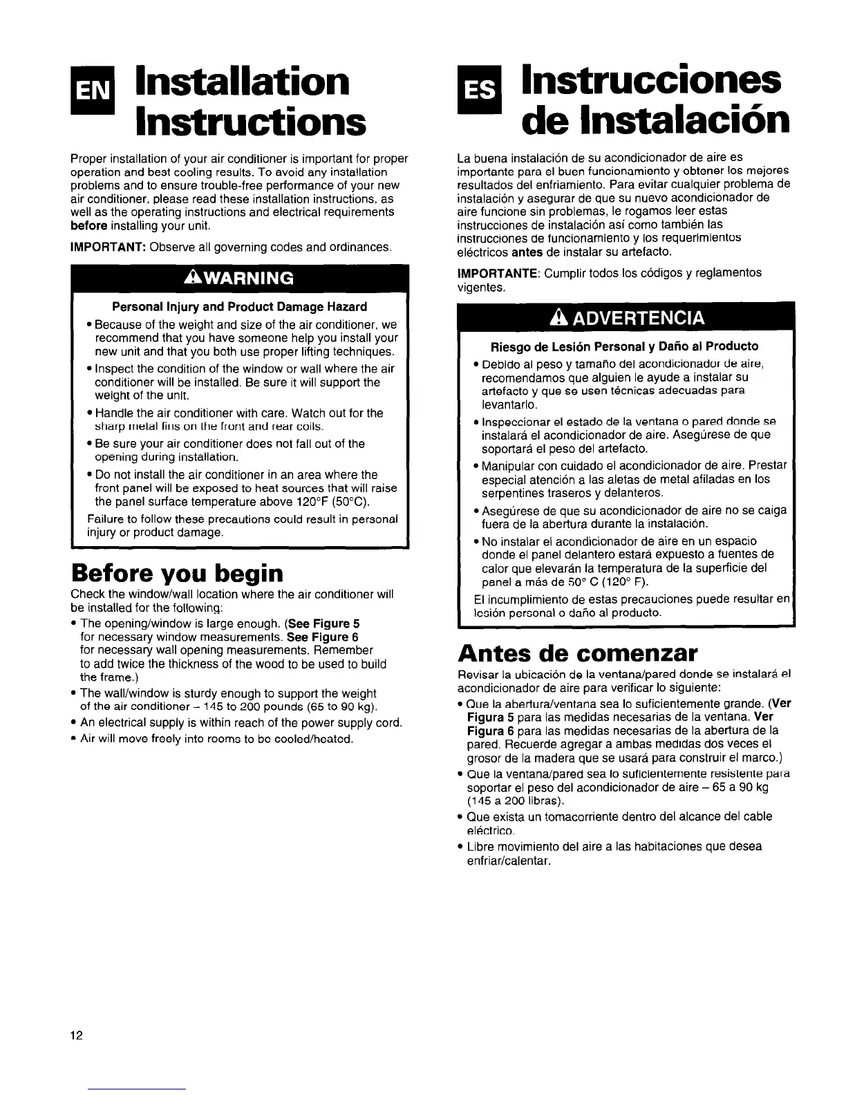 of the air conditioner - 145 to 200 pounds (65 to 90 kg).