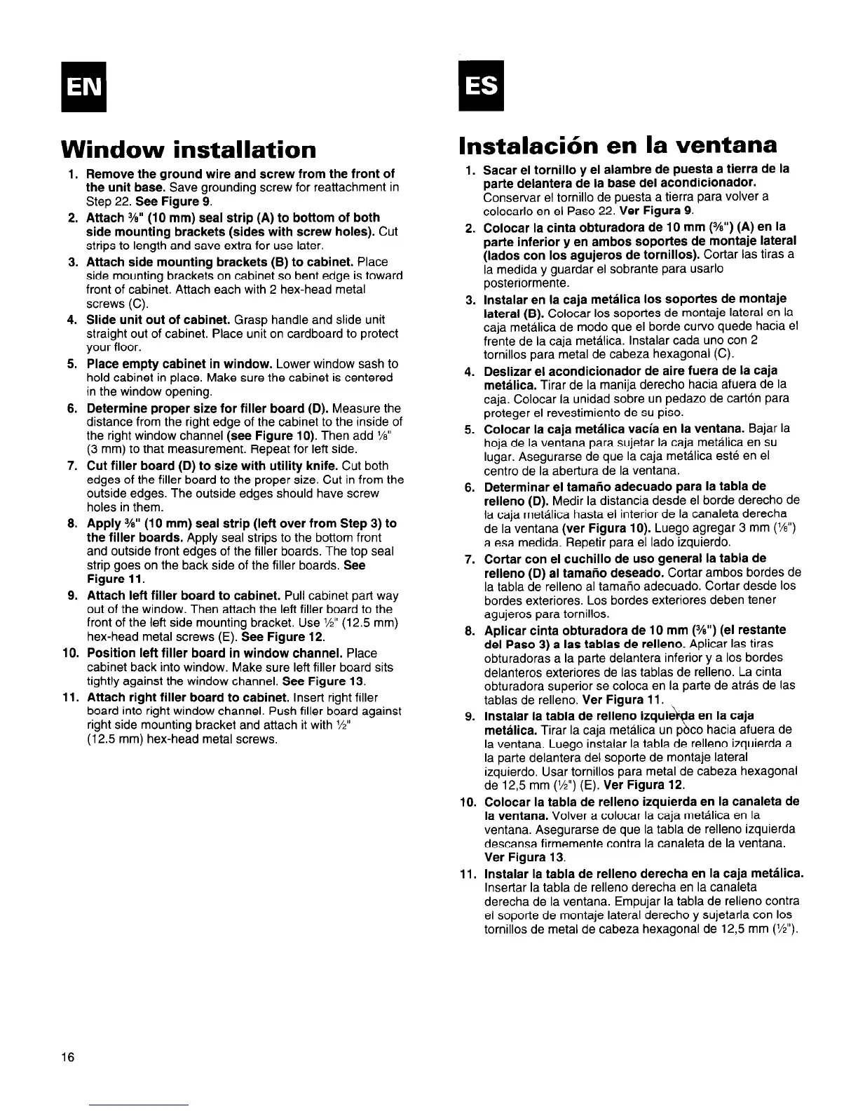 la ventana. Luego instalar la tabla de relleno izquierda a