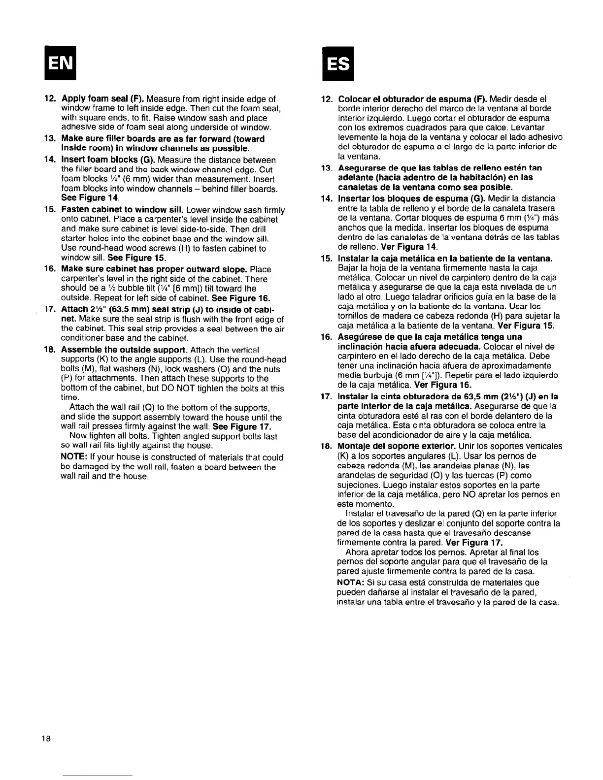 (K) a 10s soportes angulares (L). Usar 10s pernos de