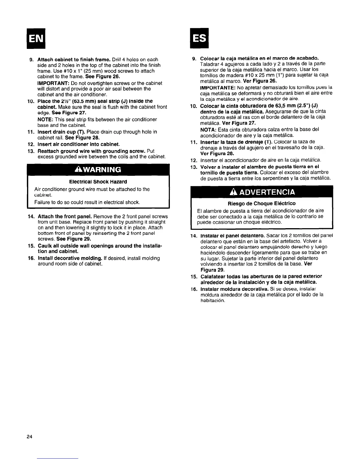 15. Caulk all outside wall openings around the installa-