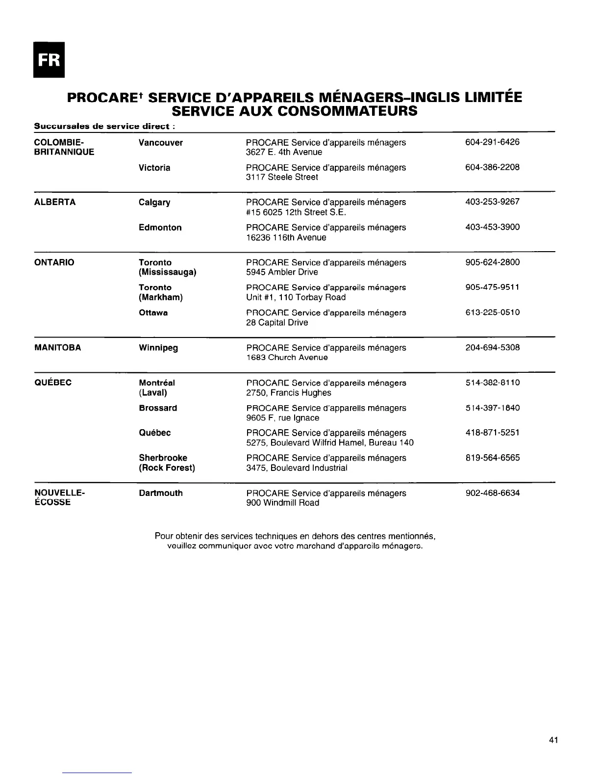 veuillez communiquer avec votre marchand d’appareils menagers.