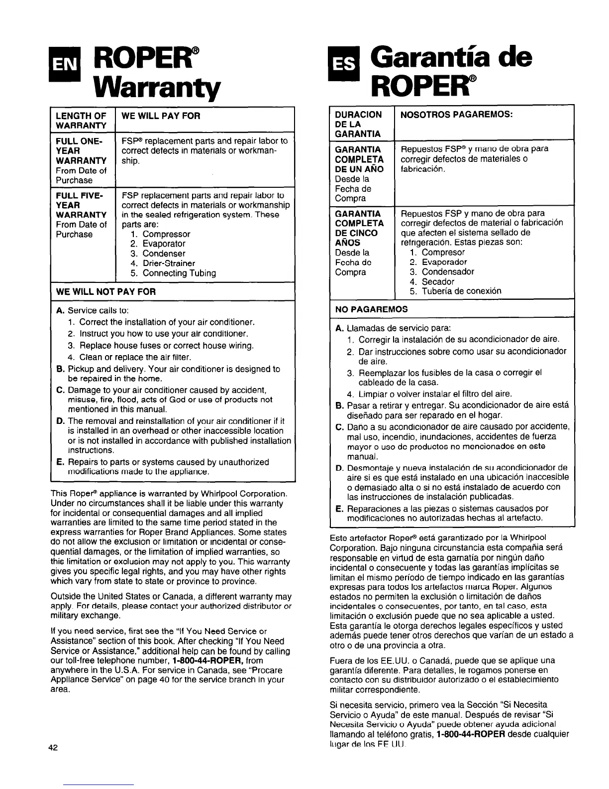Este artefactor Roper@ esta garantizado por la Whirlpool