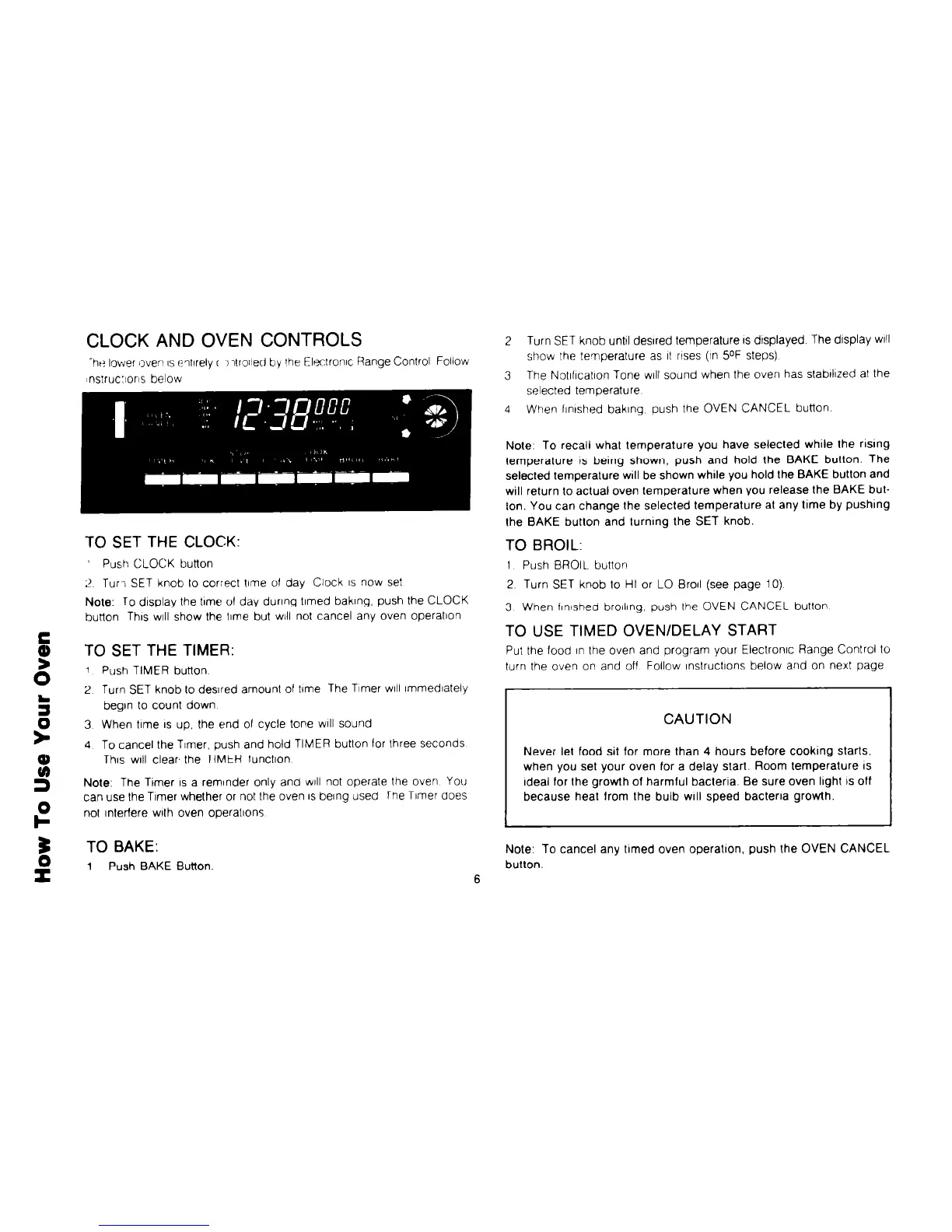 turn the oven on and off Follow Instructions below and on next page