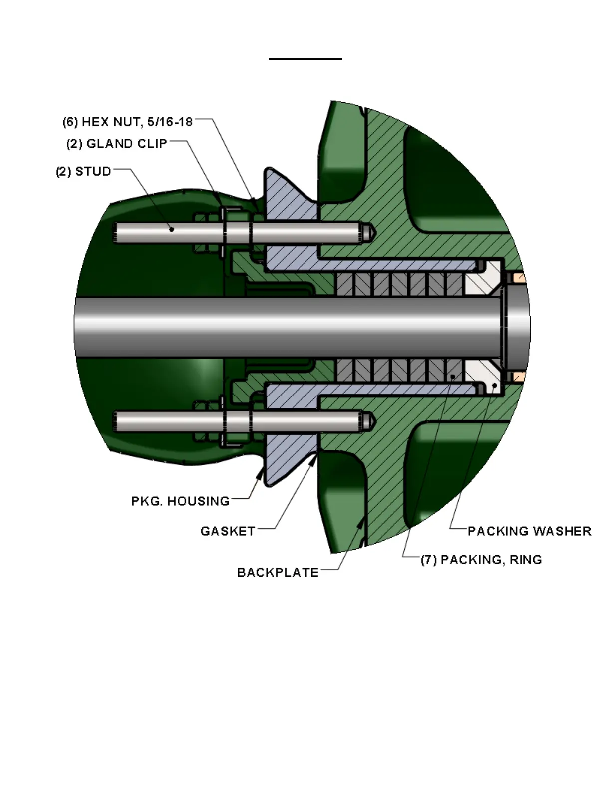 To replace packing, remove the nuts, clips, packing gland and packing rings. (Packing hooks are