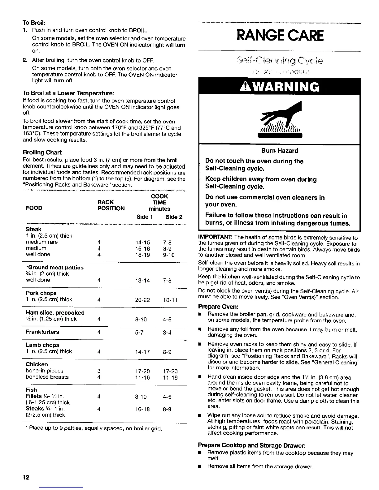the fumes given off during the Self-Cleaning cycle. Exposure to