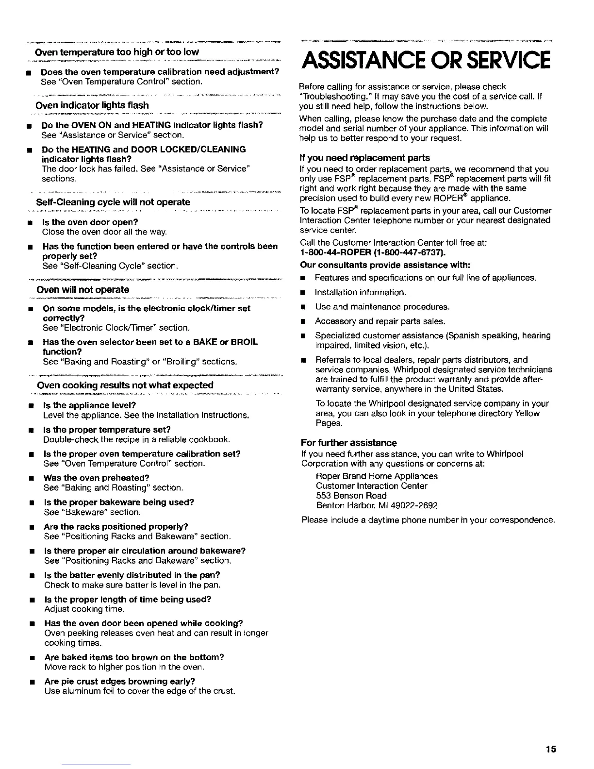 Self-Cleaning cycle will not operate precision used to buUd every new ROPER® appliance.