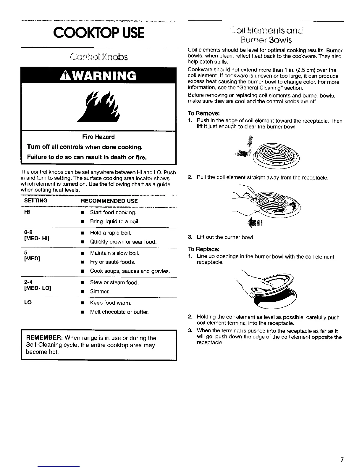 Before removing or replacing coil elements and burner bowls,