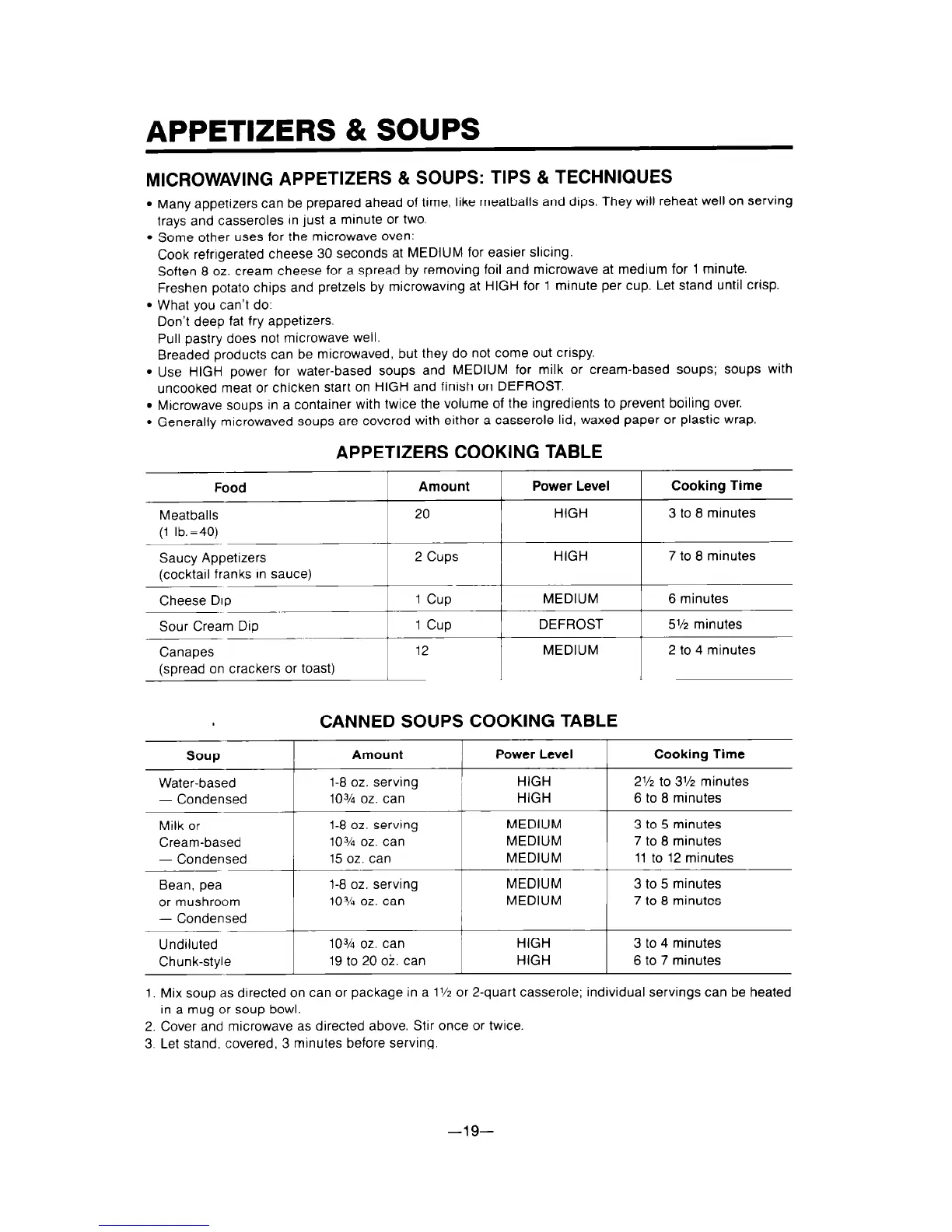 MICROWAVING APPETIZERS & SOUPS: TIPS & TECHNIQUES