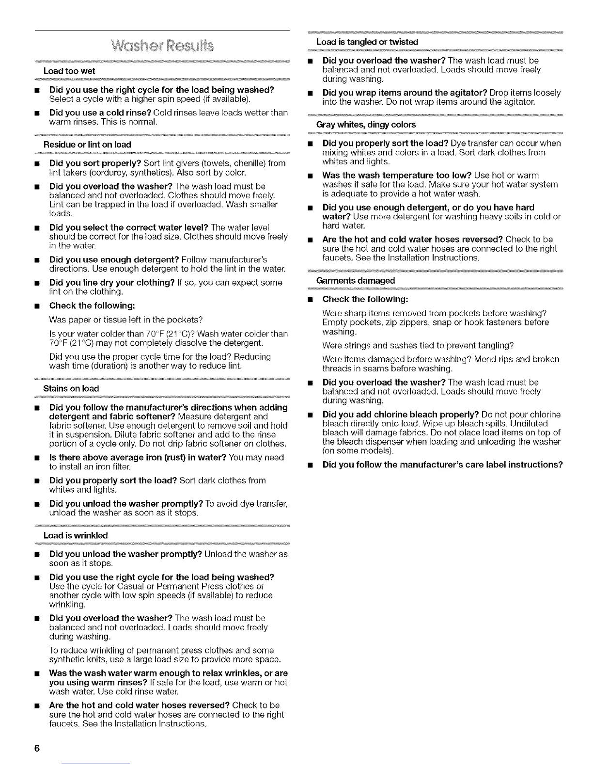 • Did you properly sort the load? Dye transfer can occur when