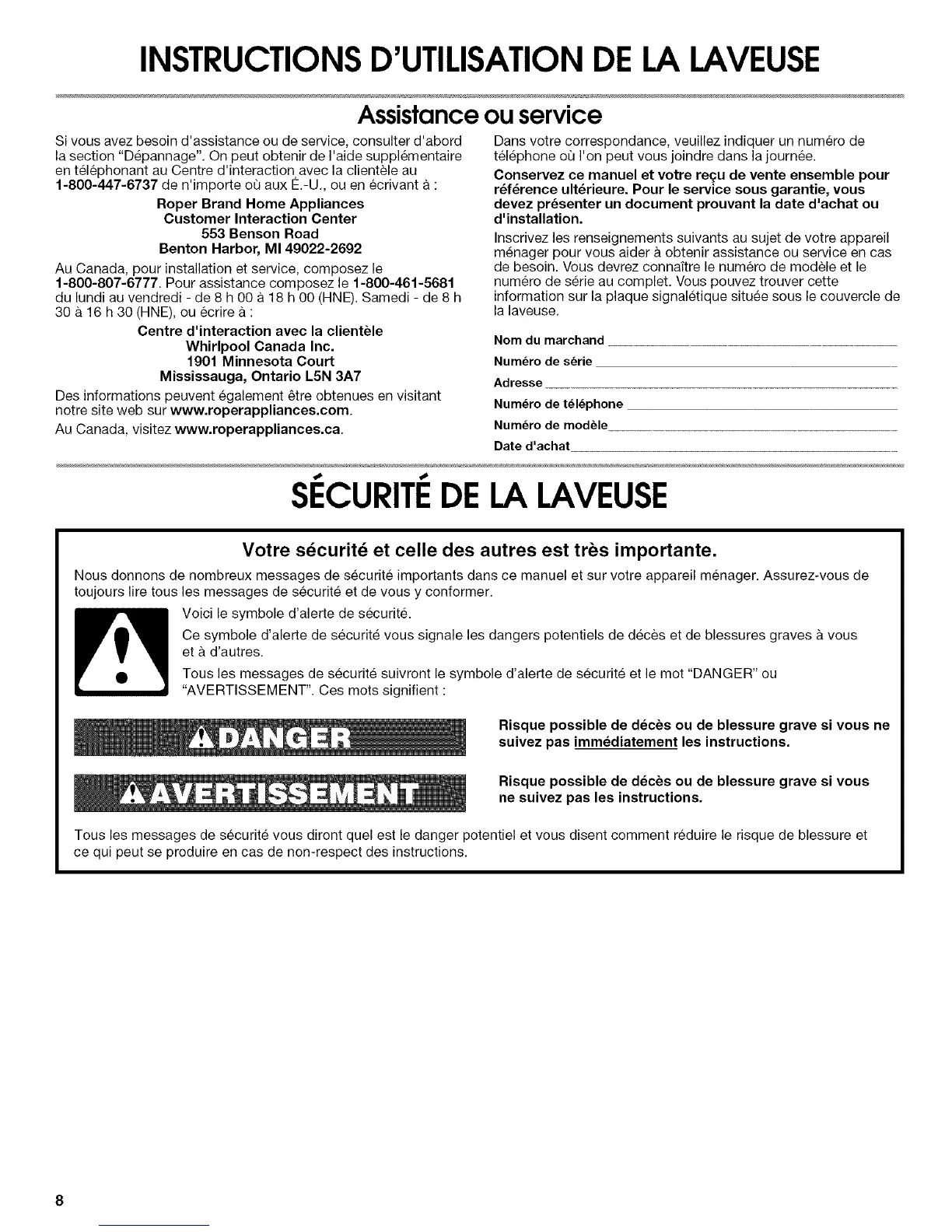 Au Canada, visitez www.roperappliances.ca.
