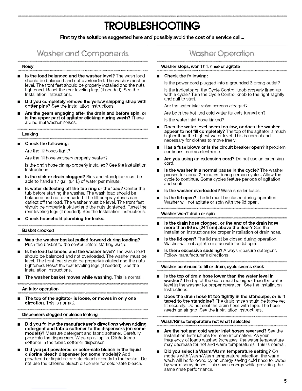 • Is the load balanced and the washer level? The wash load