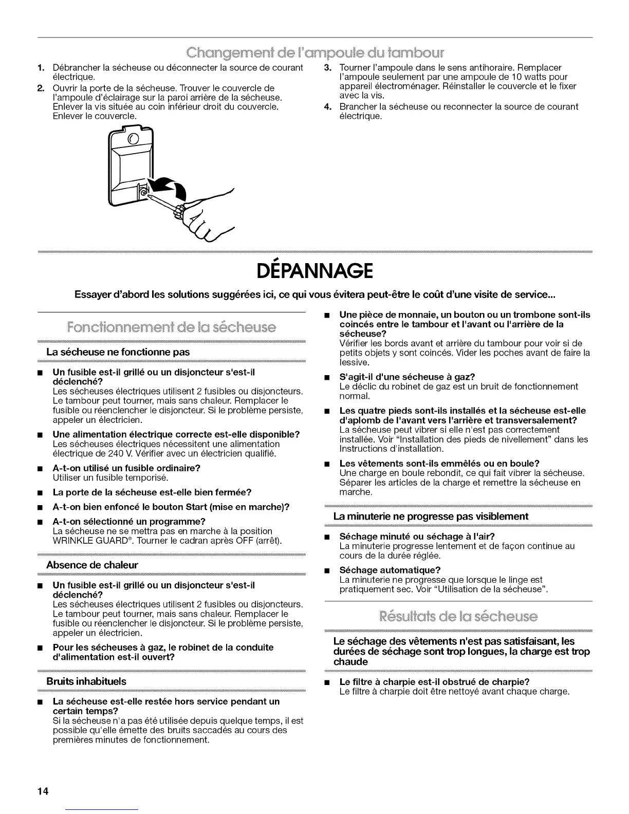 Debrancher la secheuse ou deconnecter la source de courant 3. Tourner I'ampoule dans le sens antihoraire. Remplacer