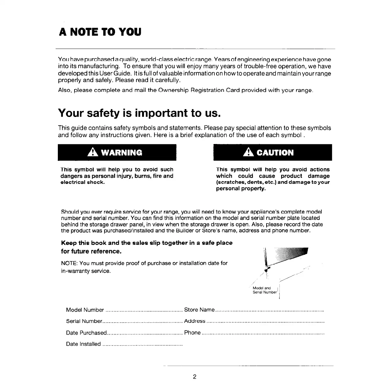 Also, please complete and mail the Ownership Registration Card provided with your range.