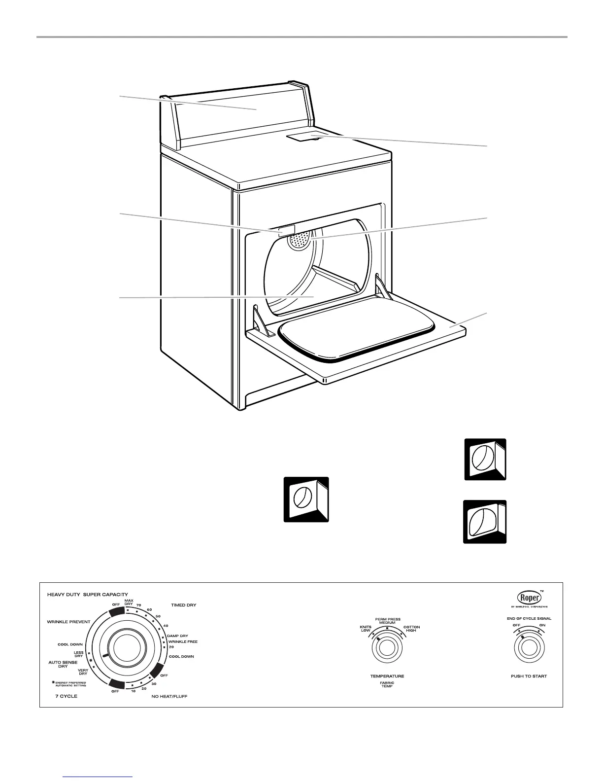 The drawings in this book may vary from your dryer. They are designed to show all of the models covered by this book.