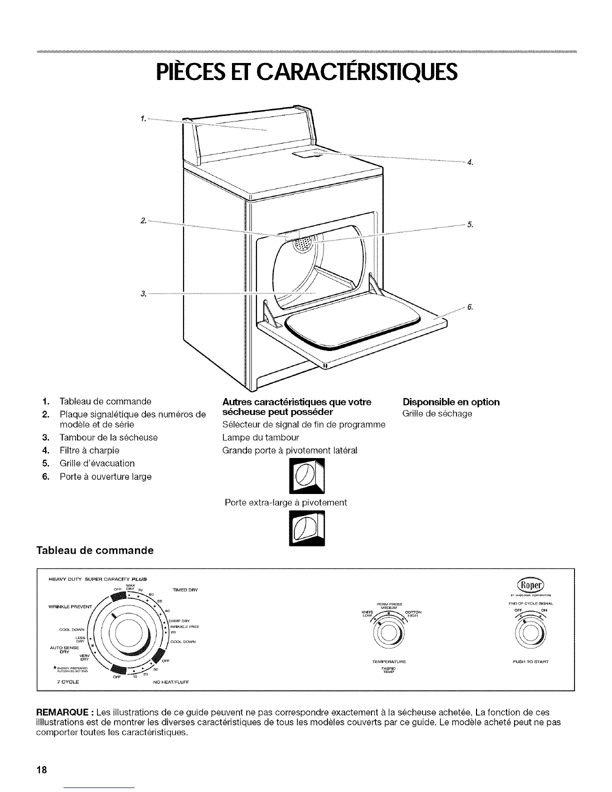 REMARQUE : Les illustrations de ce guide peuvent ne pas correspondre exactement & la secheuse achetee. La fonction de ces