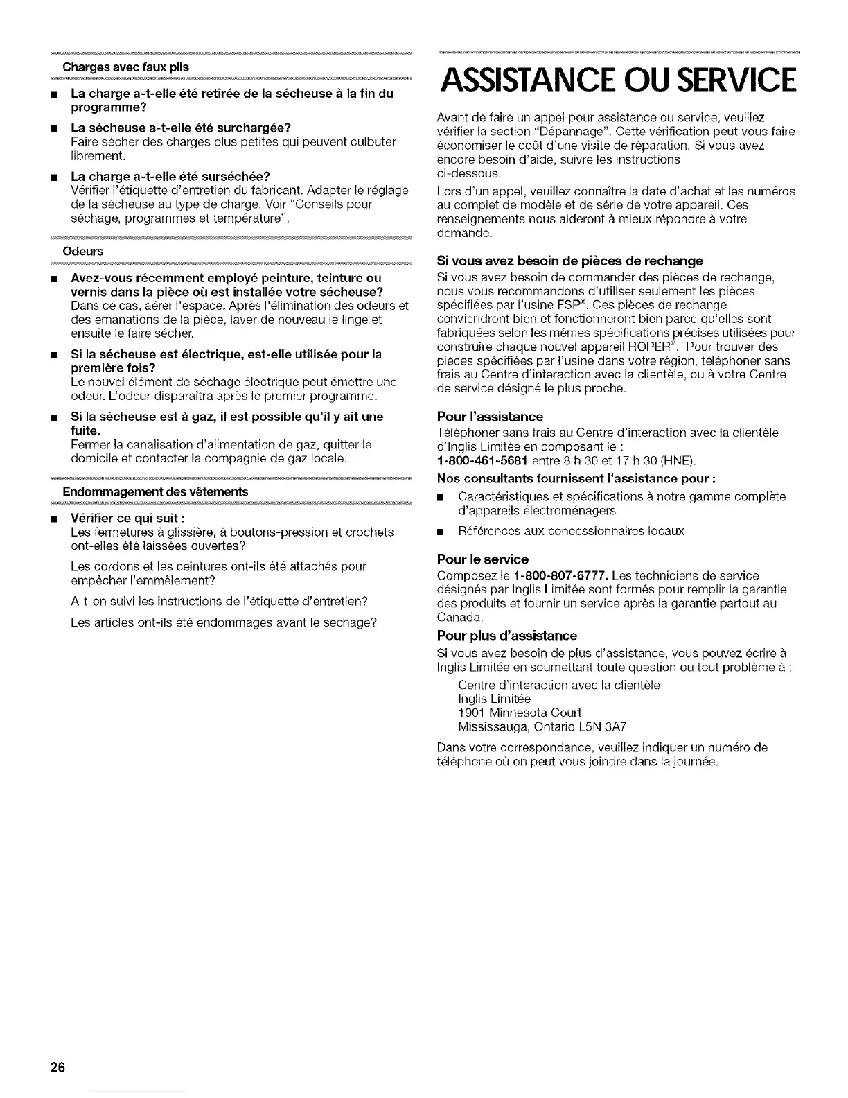 Inglis Limitee en soumettant toute question ou tout probleme a :