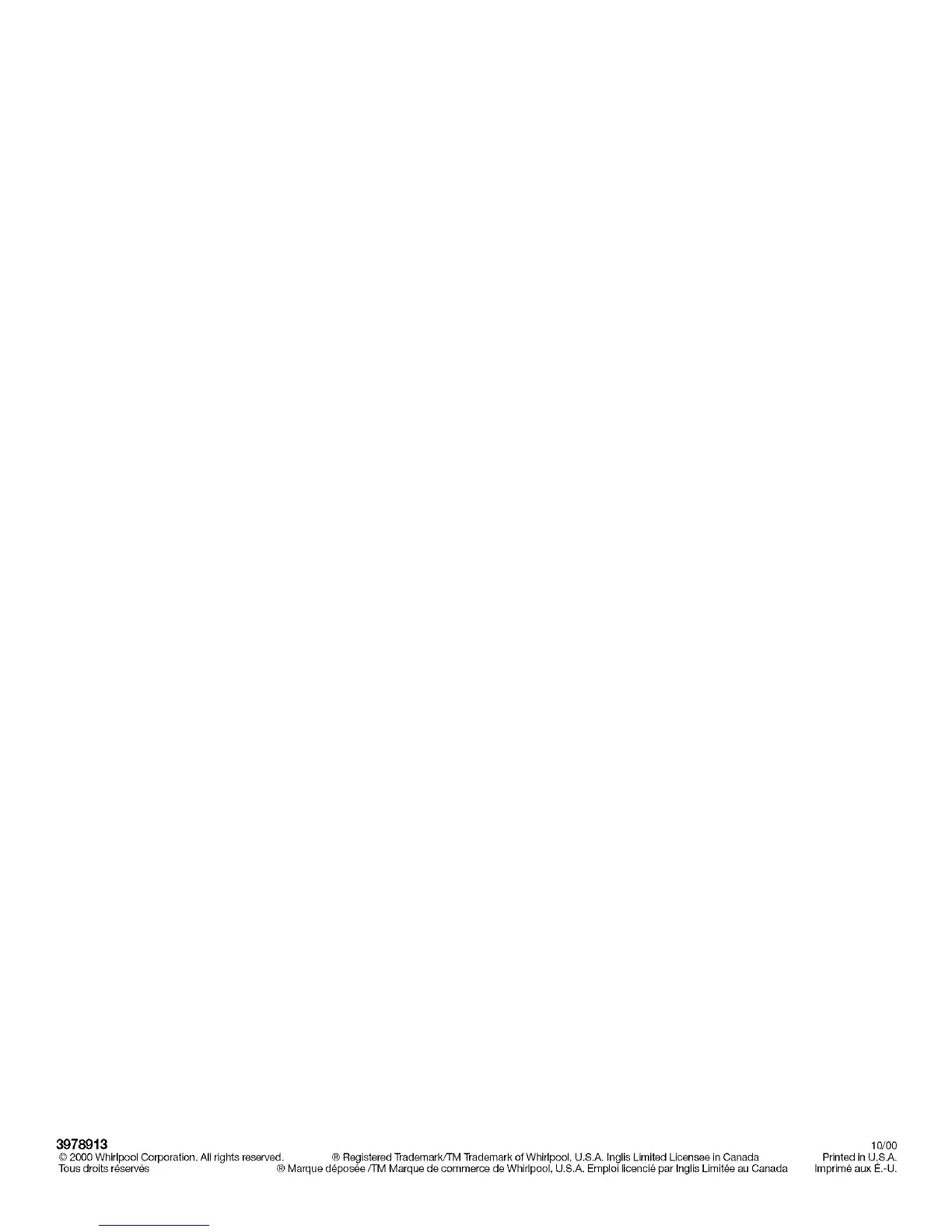 Q 2000 Whirlpool Corporation. All rights reserved. (_hRegistered Trademark/3-M Trademark of Whirlpool, U.S.A. Inglis Limited Licensee in Canada Printed in U.S_,.