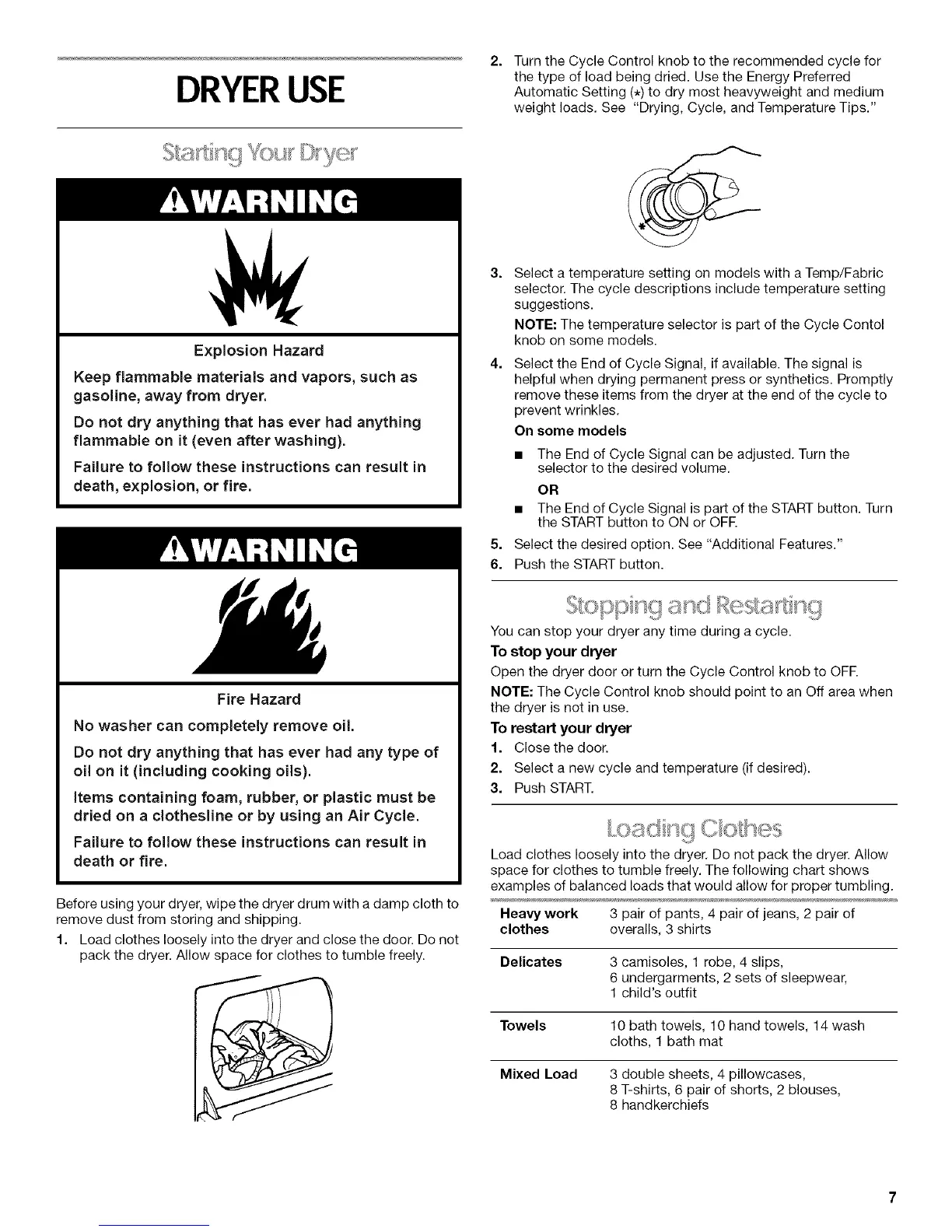 weight loads. See "Drying, Cycle, and Temperature Tips."