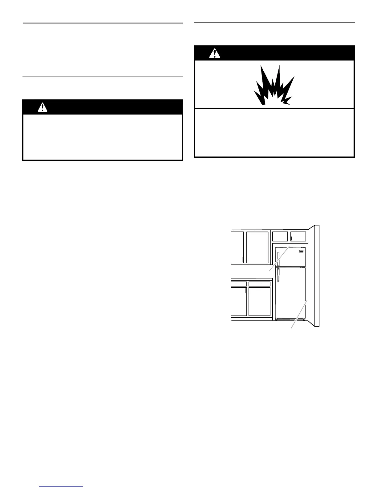 réfrigérateur, laisser un espace de ¹⁄₂ po (1,25 cm) de
