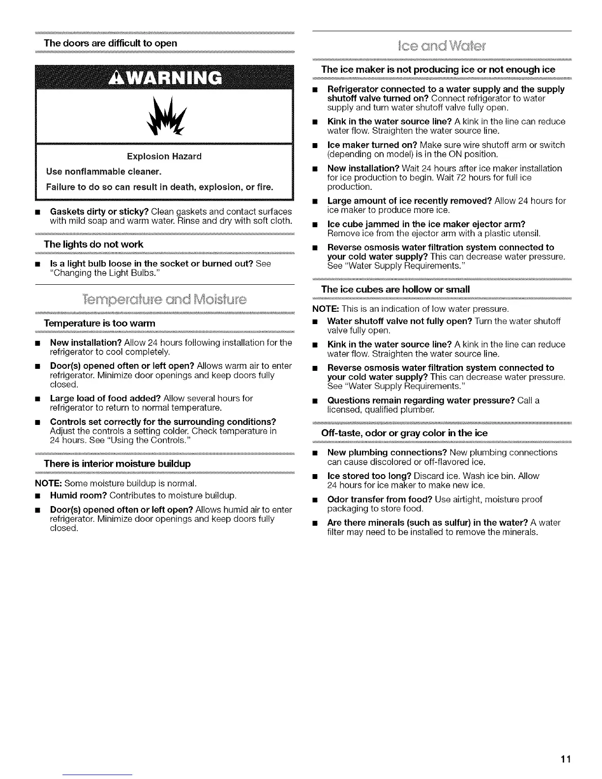 • Large amount of ice recently removed? Allow 24 hours for