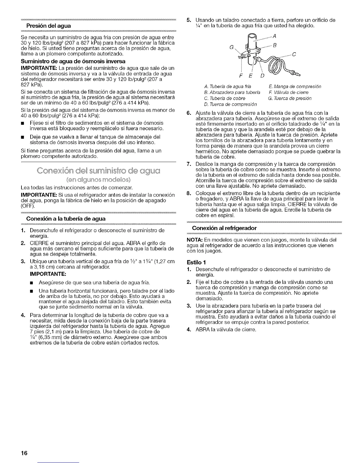 IMPORTANTE: Si usa el refrigerador antes de instalar la conexi6n
