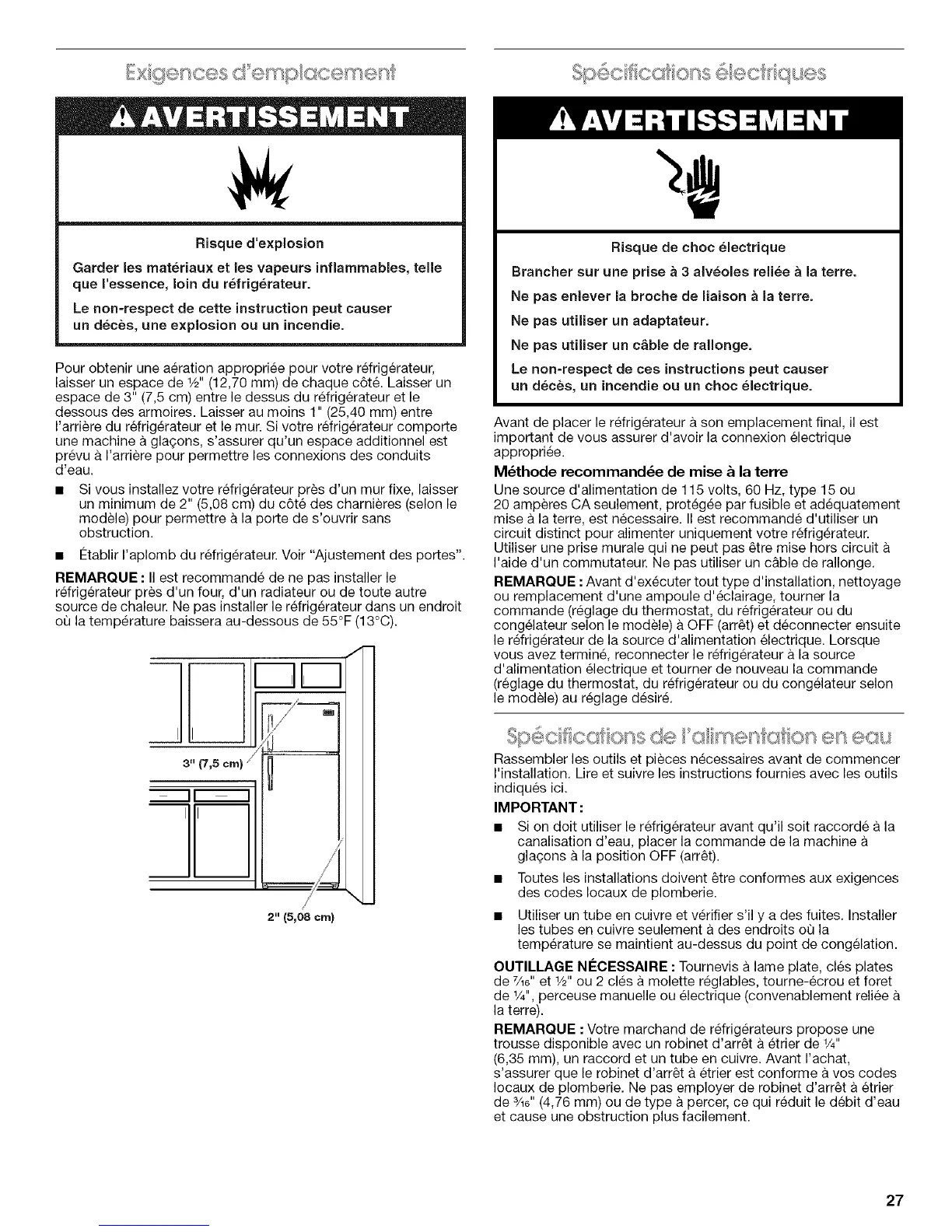 espace de 3" (7,5 cm) entre le dessus du refrigerateur et le