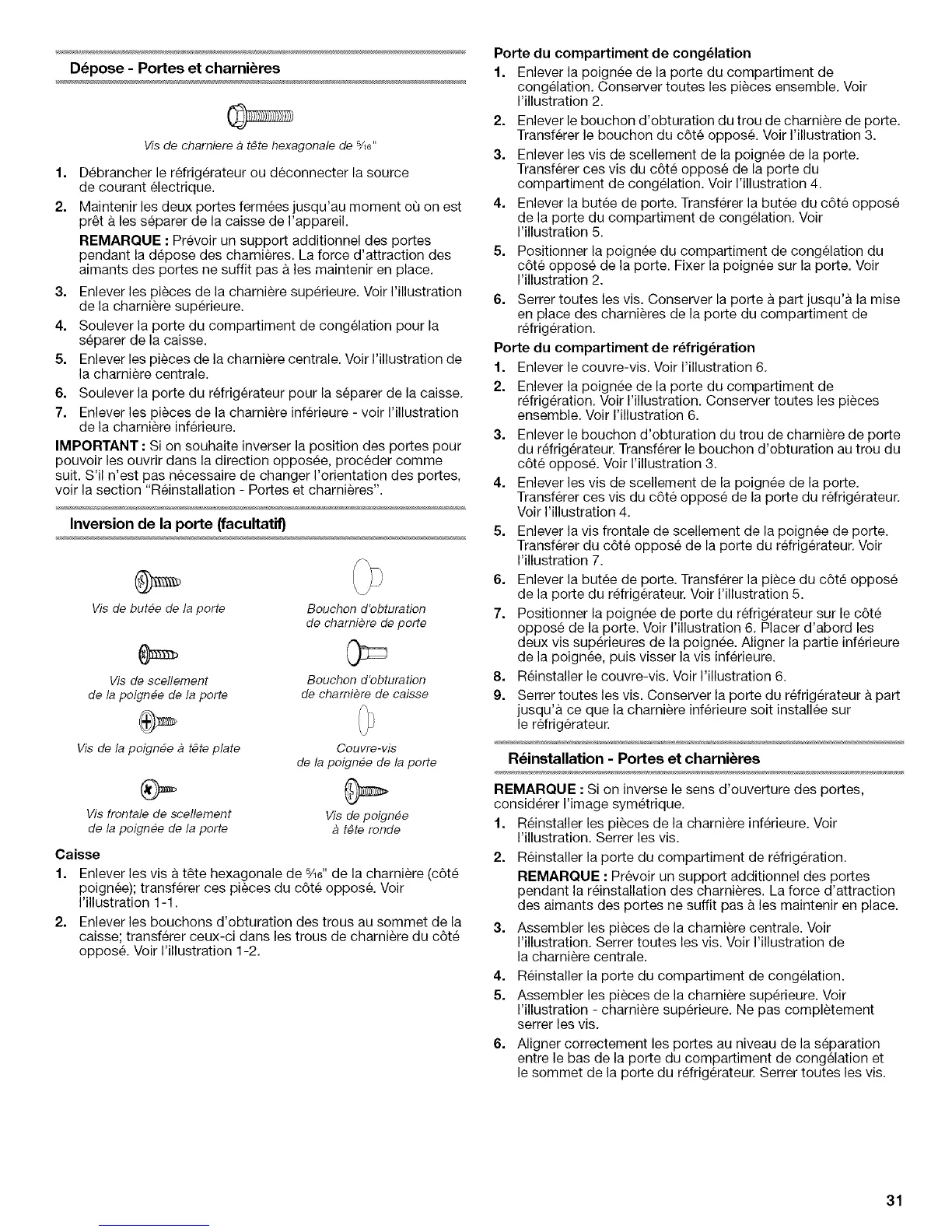 Transferer ces vis du c6te oppose de la porte du refrigerateur.