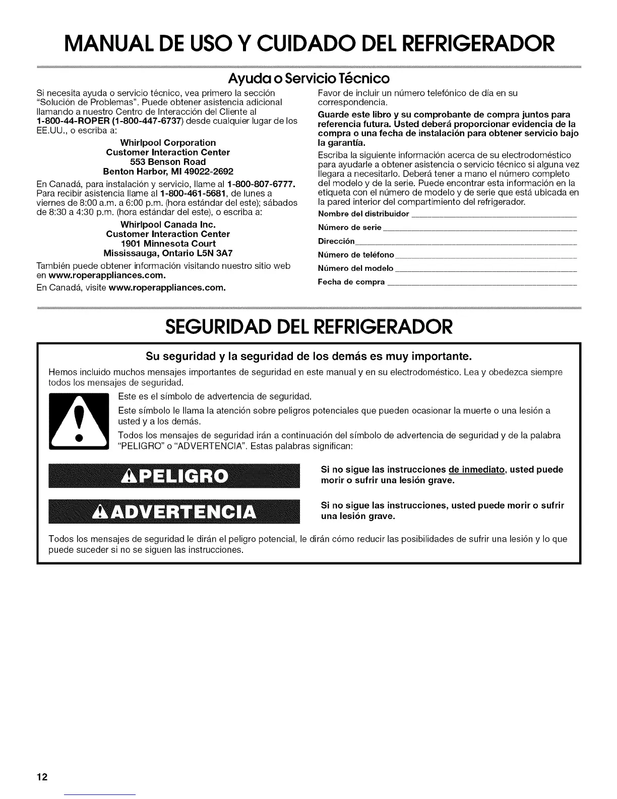 1-800-44-ROPER (1-800-447-6737) desde cualquier lugar de los