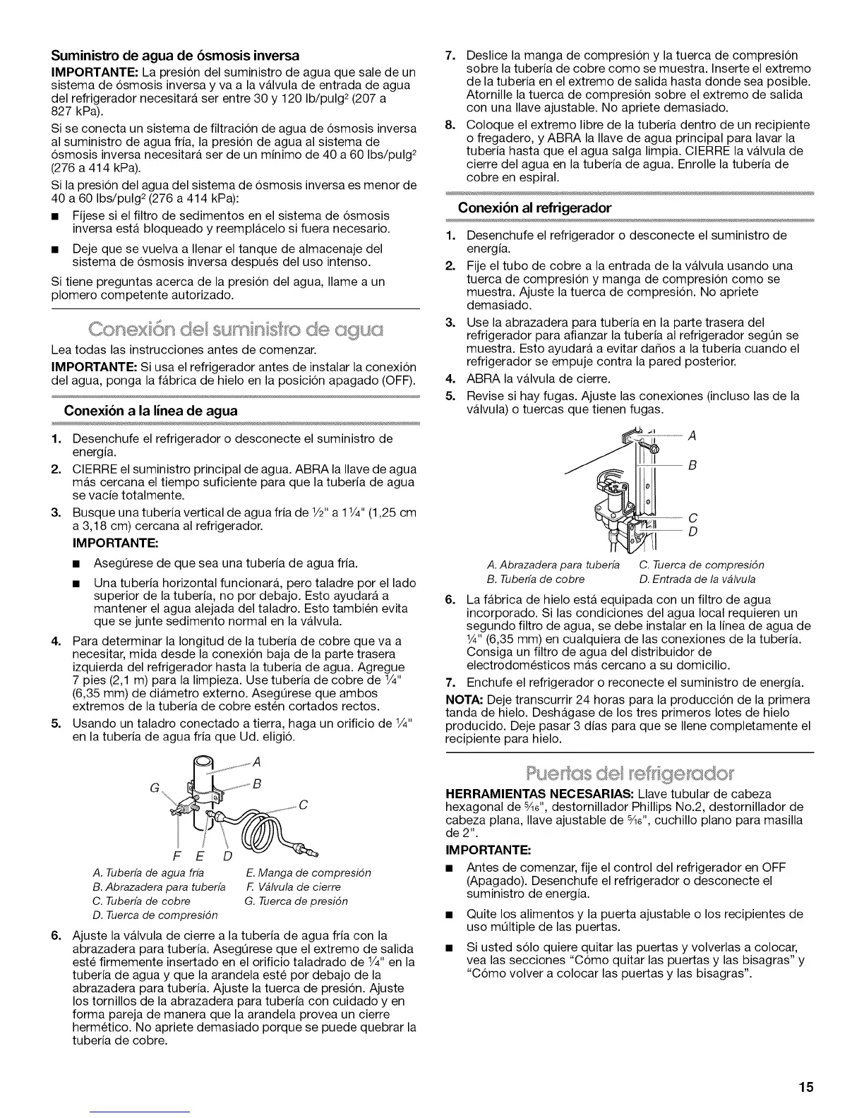 IMPORTANTE" Si usa el refrigerador antes de instalar la conexi6n