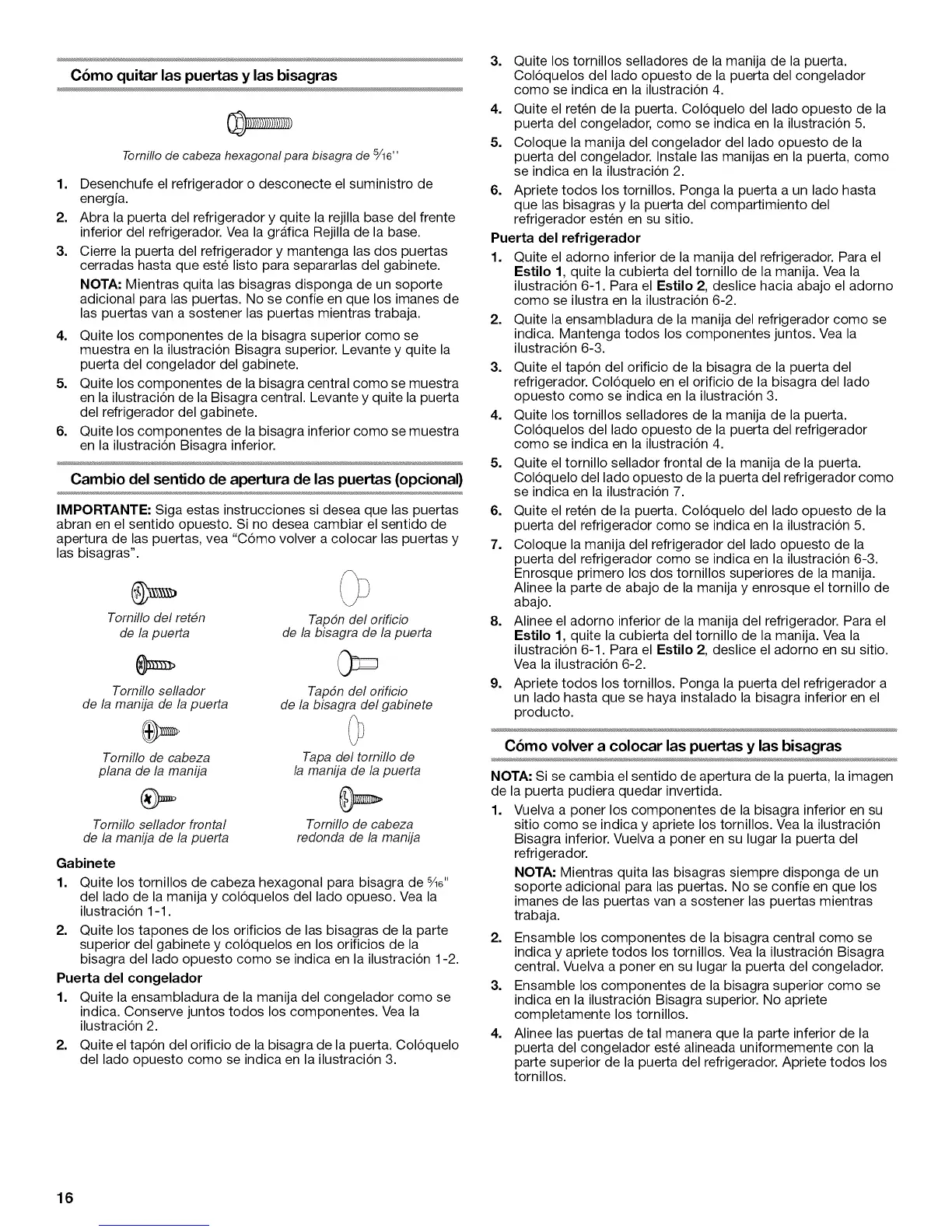 puerta del refrigerador como se indica en la ihstracion 6-3.