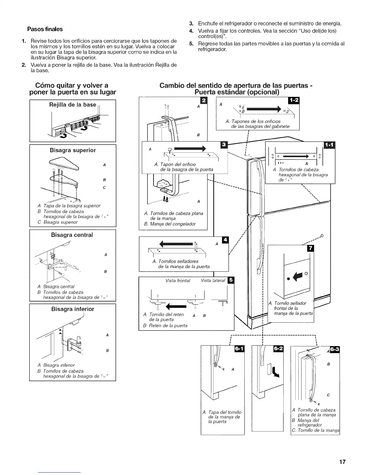 los mismos y los tornillos esten en su lugar. Vuelva a colocar