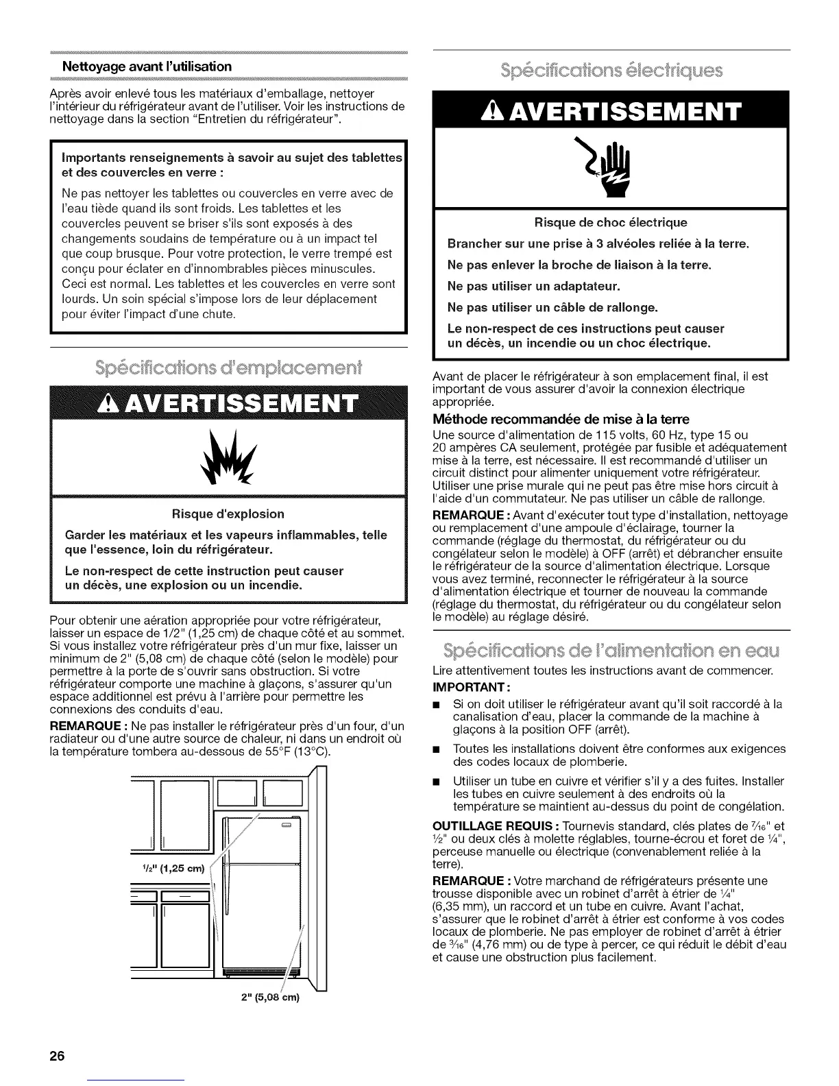 Avant de placer le refrigerateur & son emplacement final, il est
