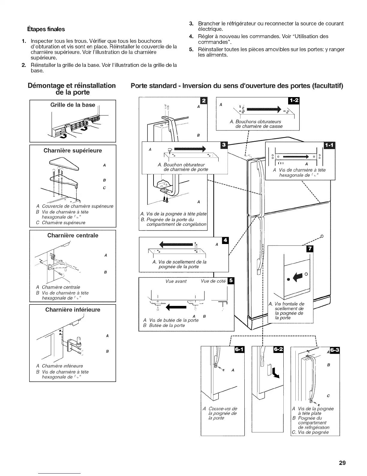 5. Reinstaller toutes les pieces amovibles sur les portes: y ranger