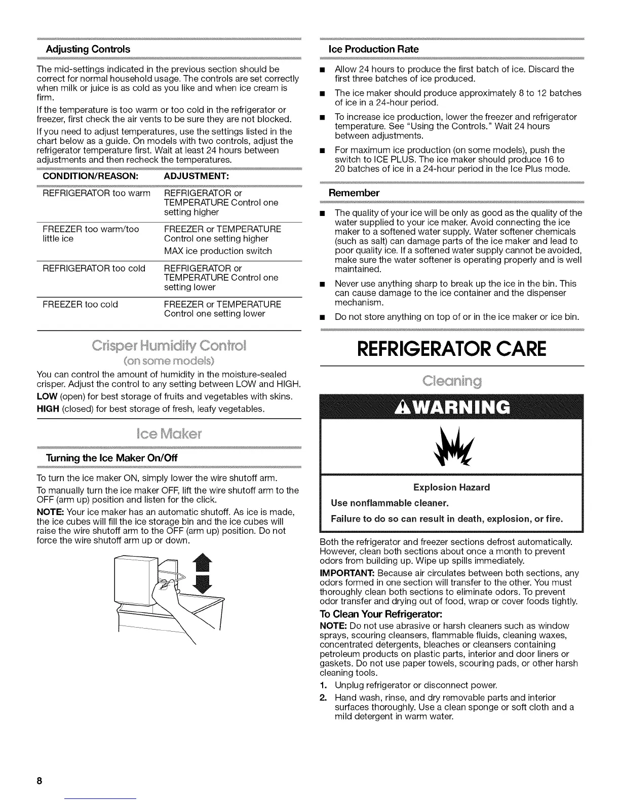To manually turn the ice maker OFF, lift the wire shutoff arm to the
