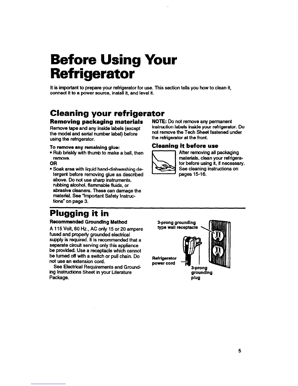 It is important to prepare your refrigerator for use. This section tells you how to clean it,