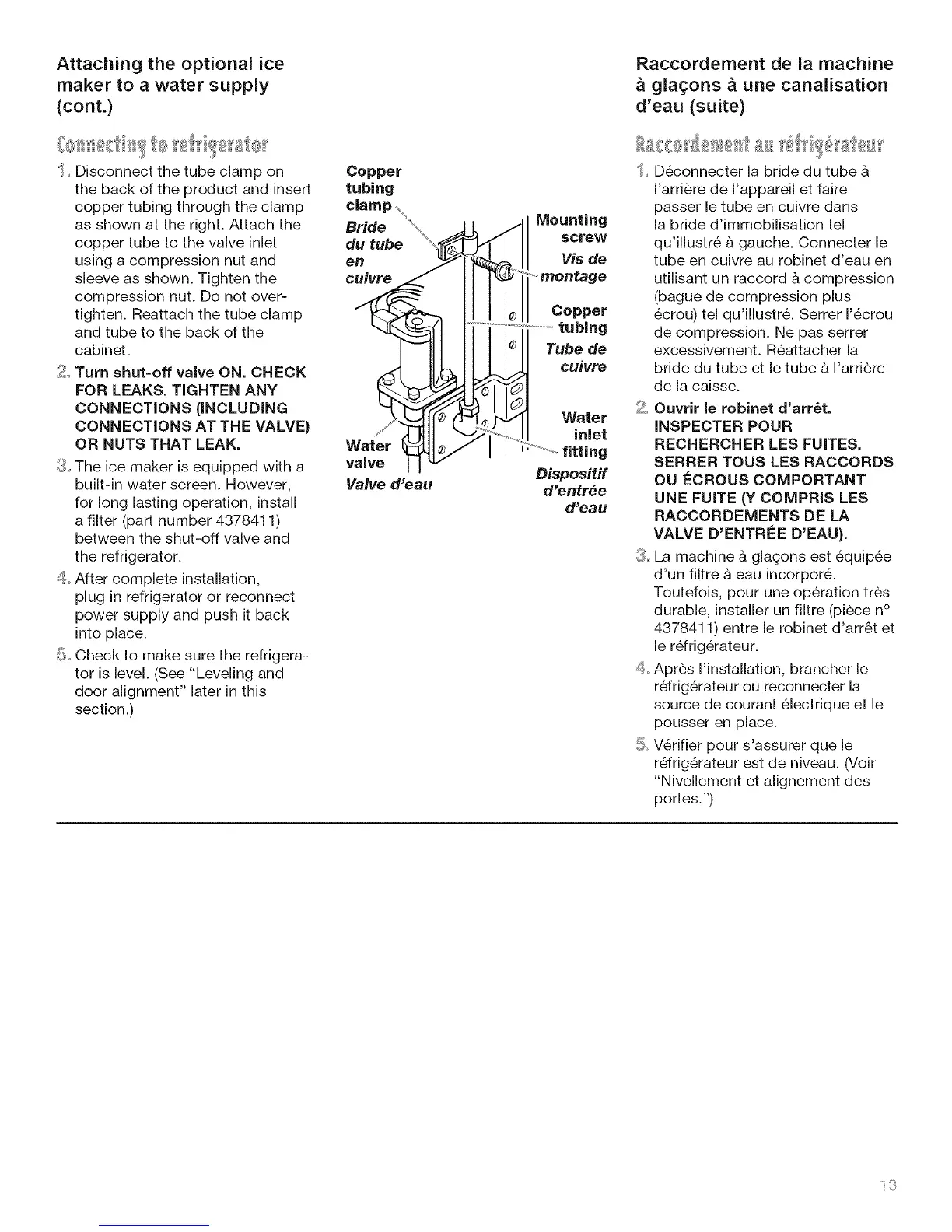4378411) entre le robinet d'arr6t et