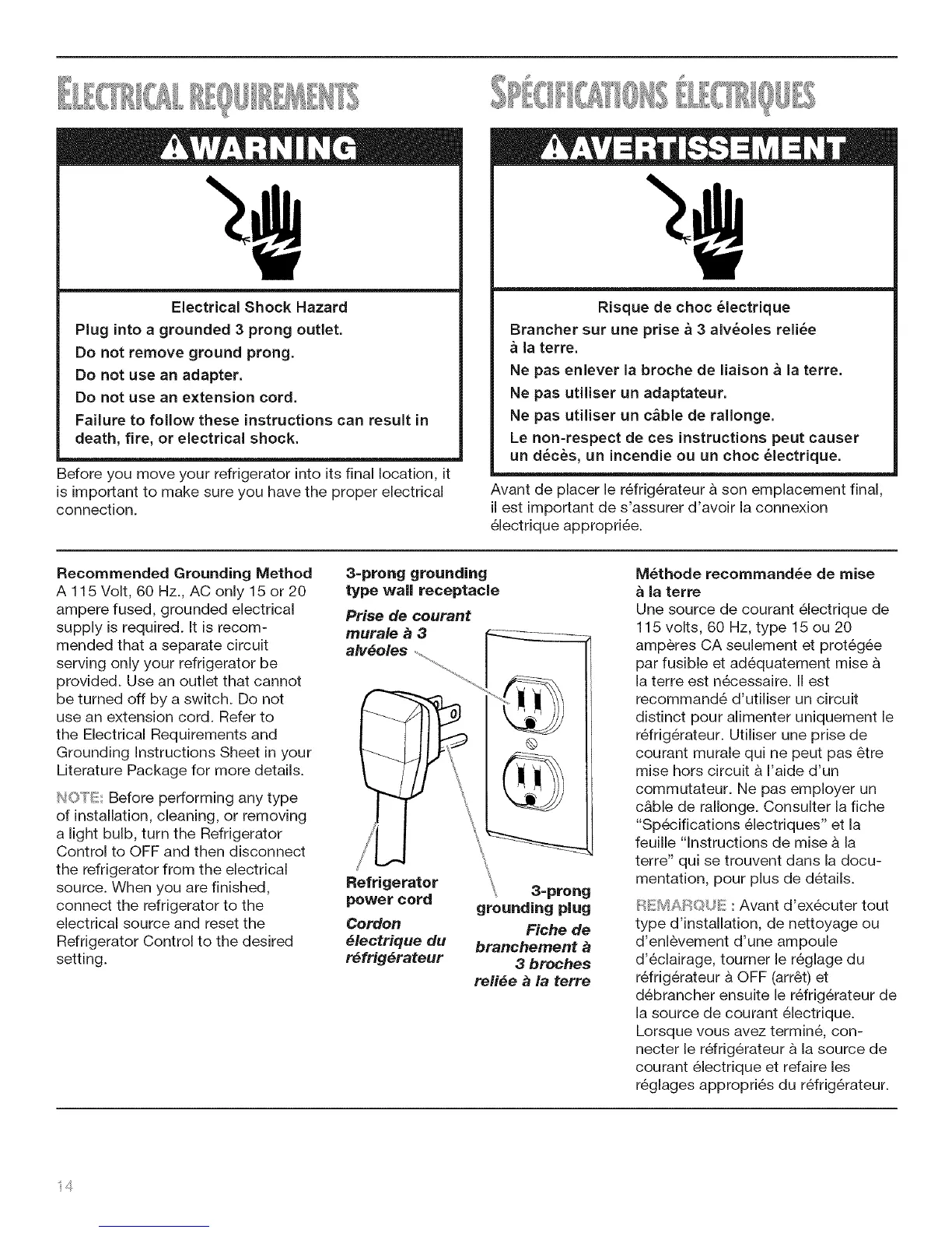 necter le r6frig6rateur & la source de