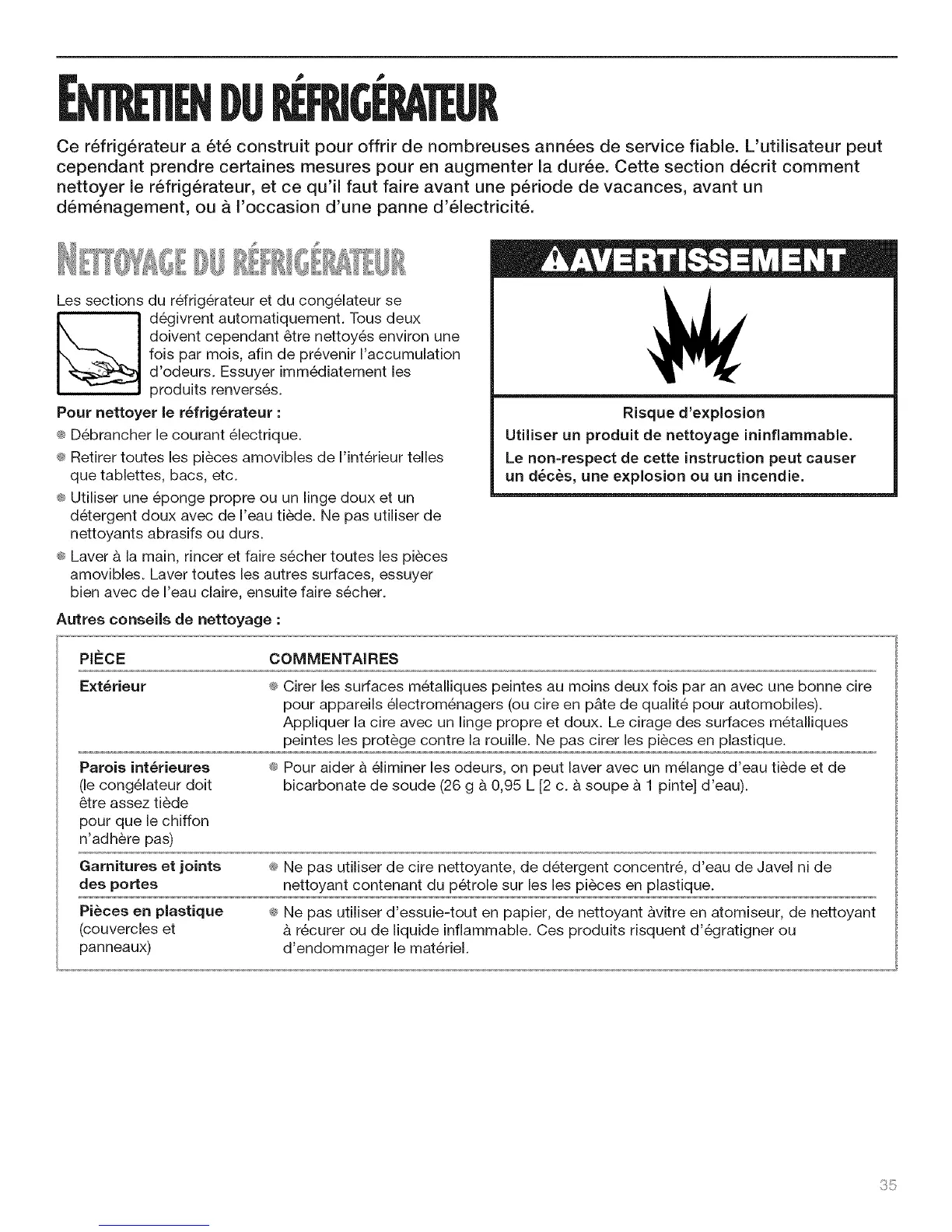 Garnitures et joints _ Ne pas utiliser de cite nettoyante, de d_tergent concentr6, d'eau de Javel ni de