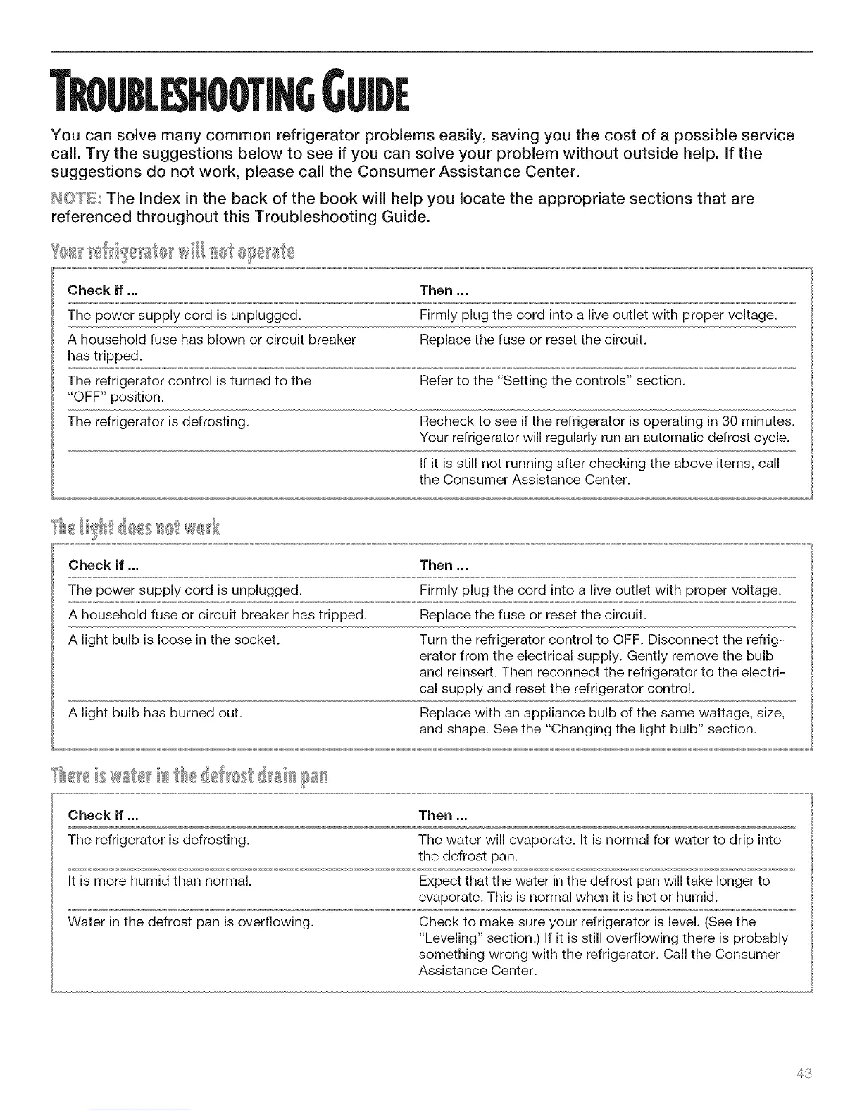 and reinsert. Then reconnect the refrigerator to the electri-
