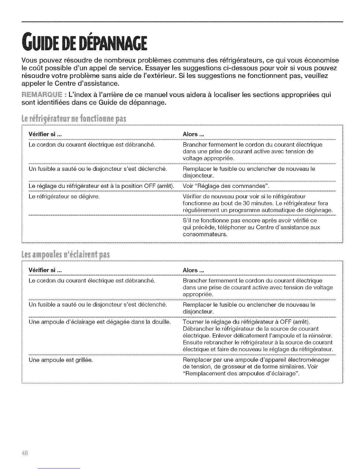 Vous pouvez r6soudre de nombreux probl_mes communs des r6frig6rateurs, ce qui vous 6conomise