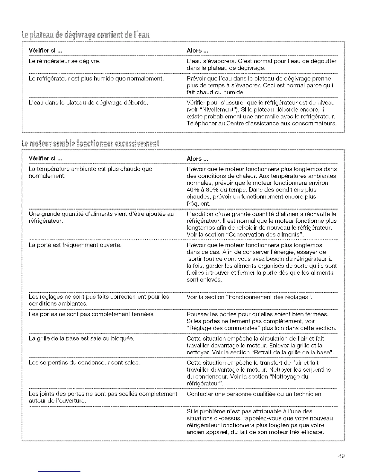 L'eau dans le plateau de d6givrage d6borde. V6rifier pour s'assurer que le r6frig6rateur est de niveau