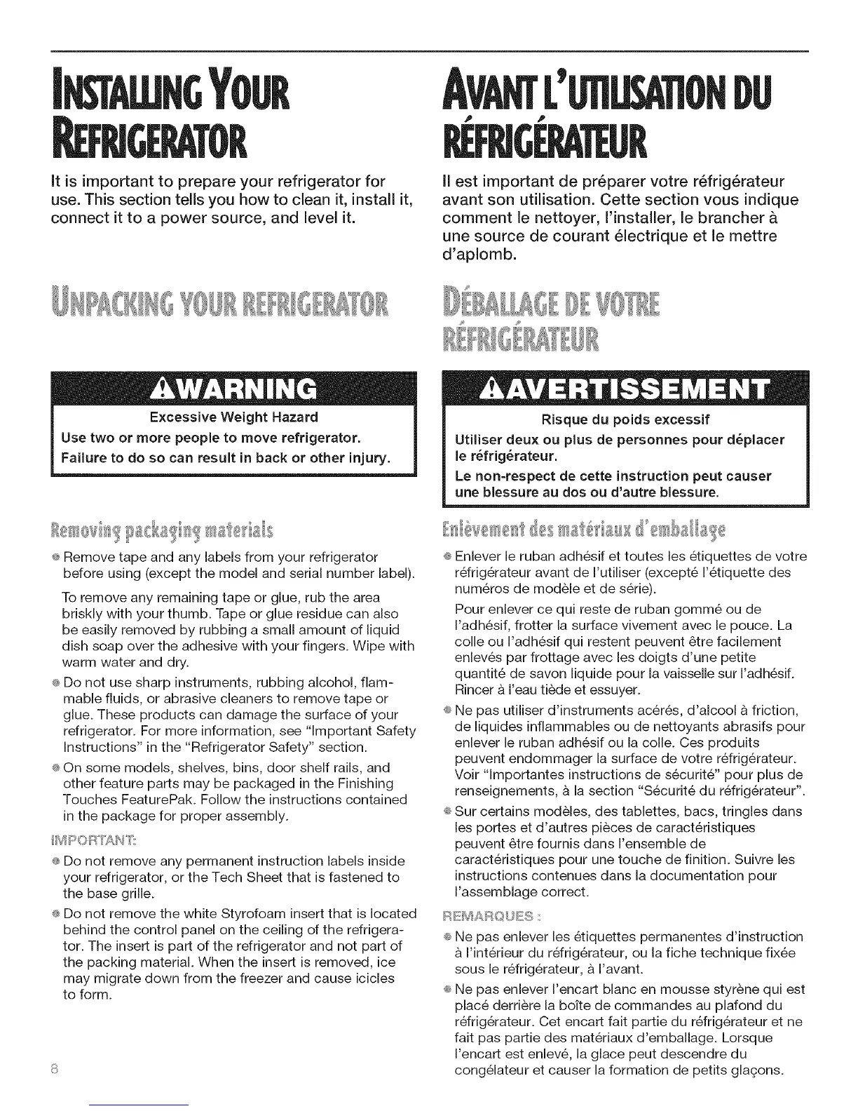 ®Enlever le ruban adh6sif et toutes les 6tiquettes de votre