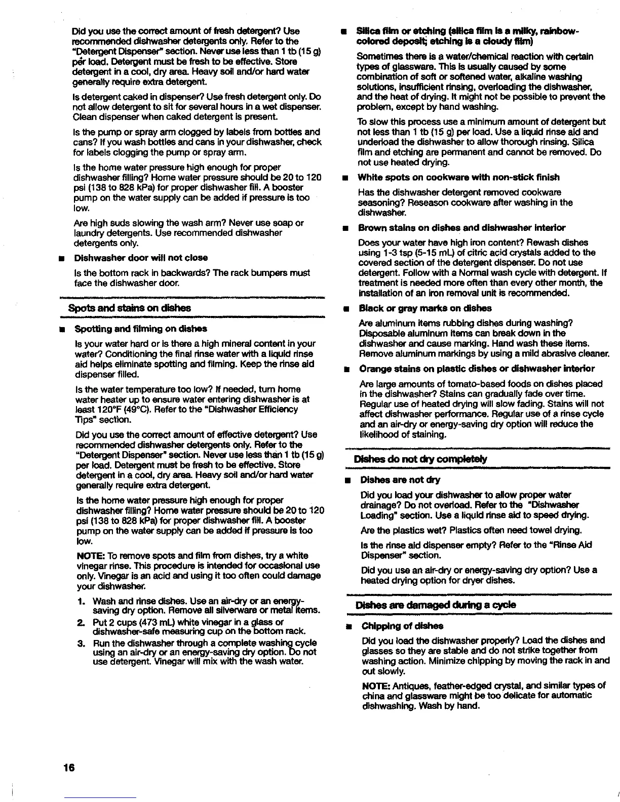 underload the dishwasher to allow thorough rinsing. Silica