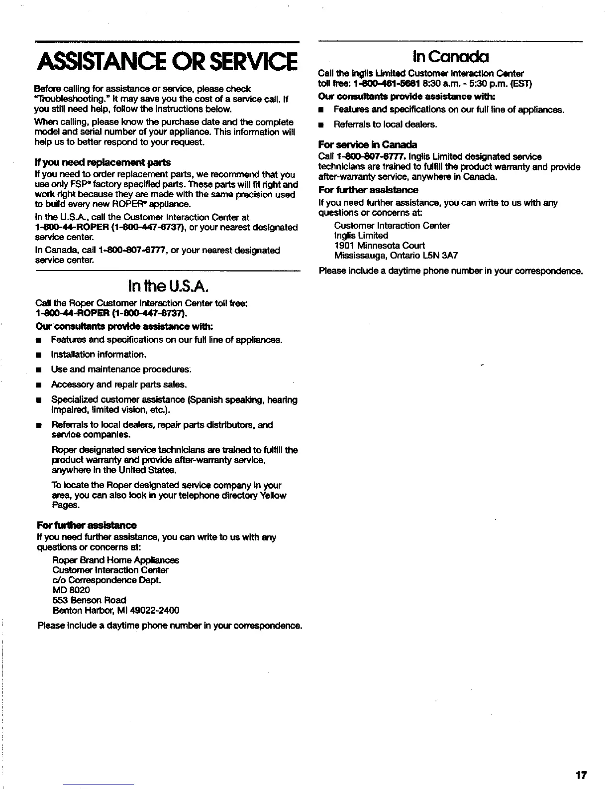 1-800-44-ROPER (1-800-447-6737), or your nearest designated