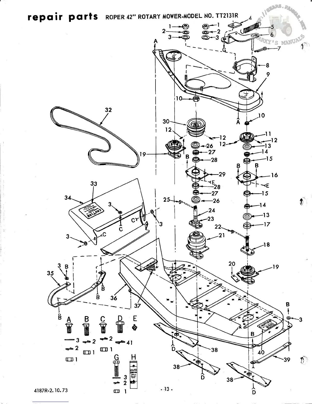 Roper TT2131R - Mower Repair Parts List