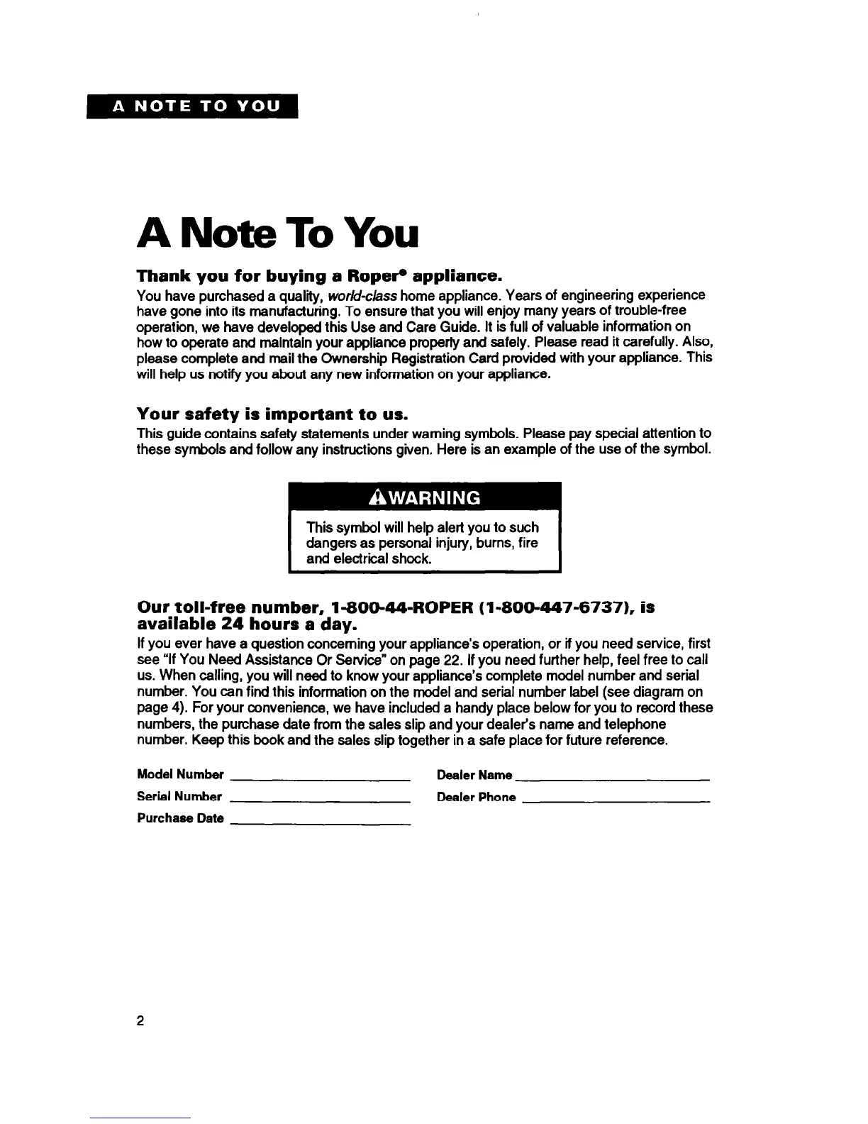 please complete and mail the Ownership Registration Card provided with your appliance. This