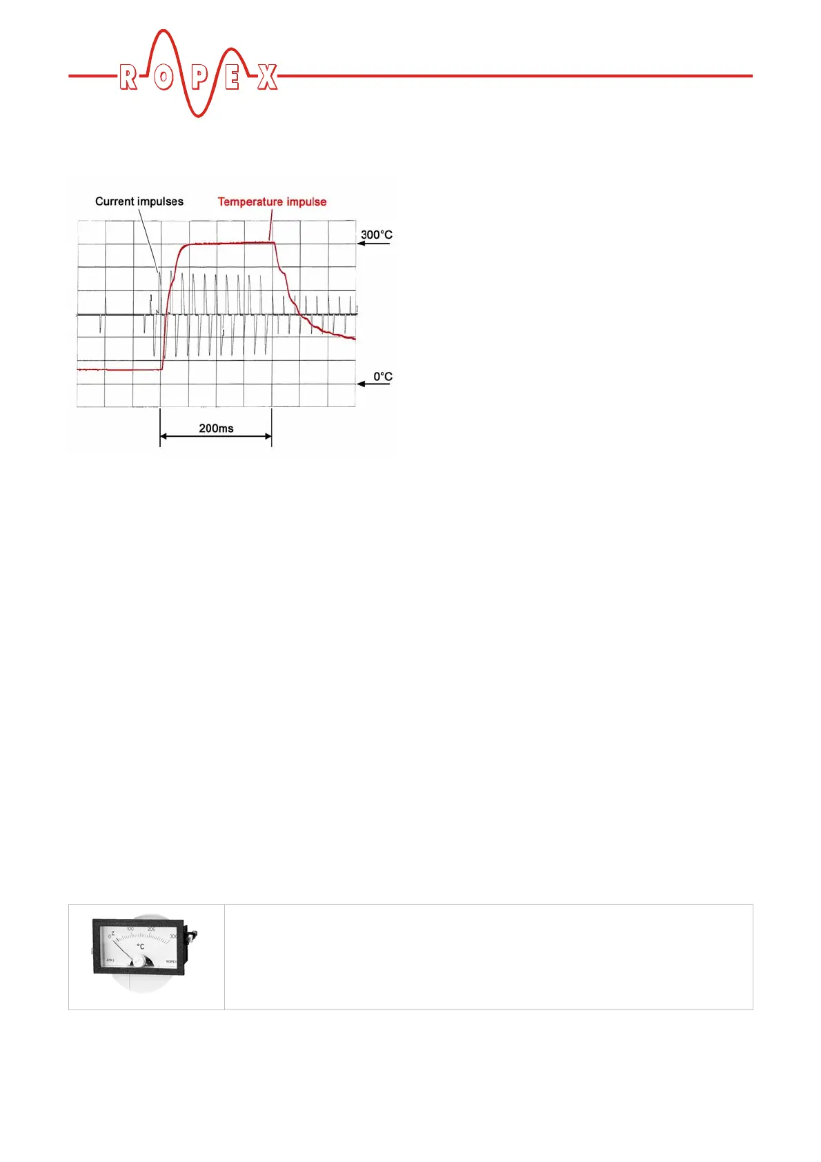 Analog indication of the ACTUAL temperature of the heating element in °C. The