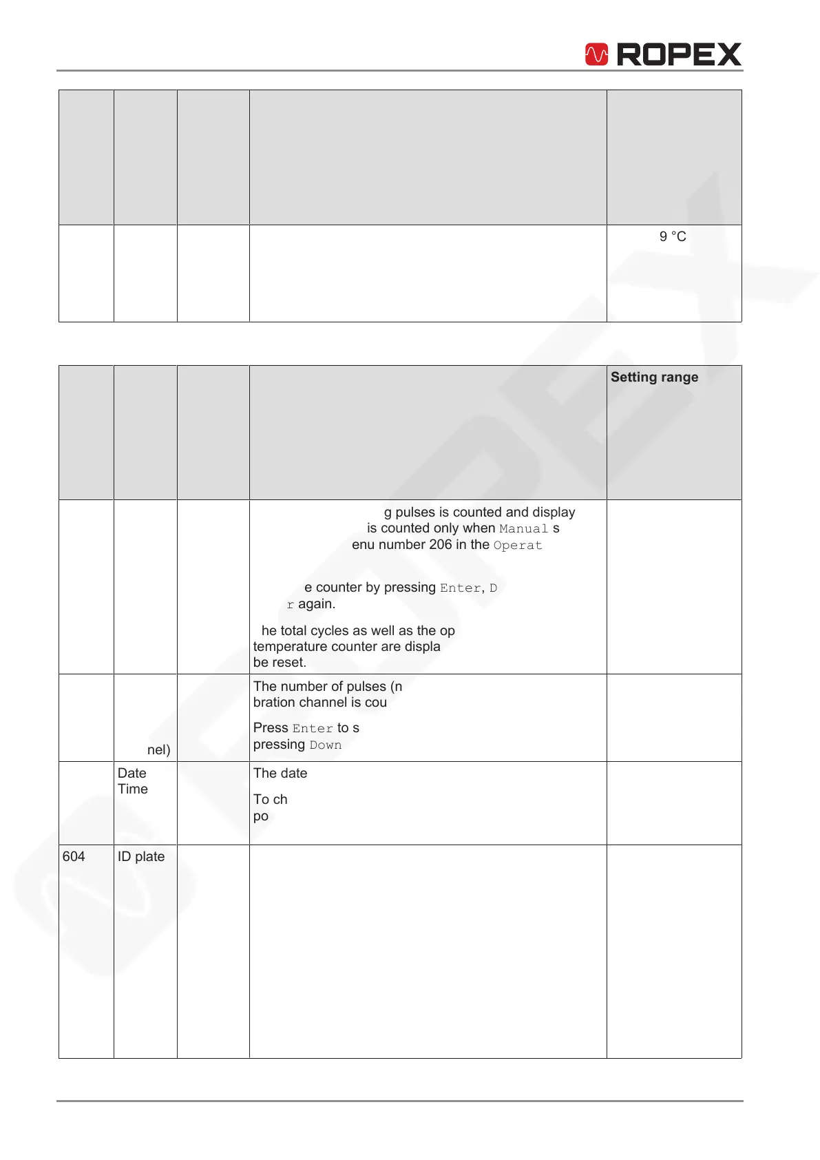 604 ID plate Shows the following information regarding the tempera-