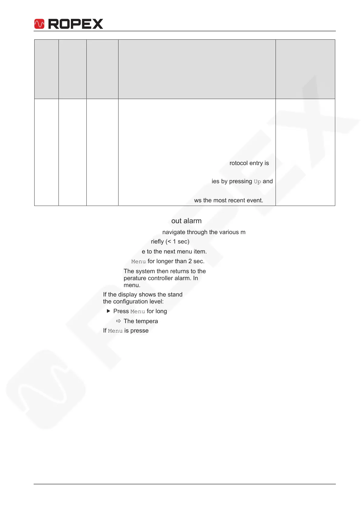 8.1.2 Menu navigation without alarm