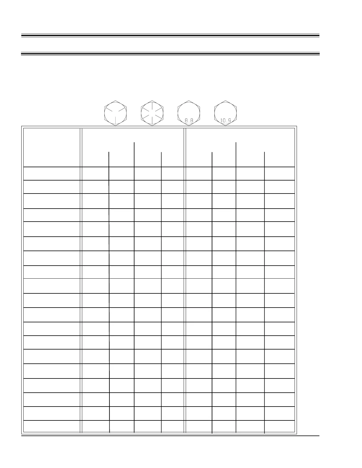BOLT SIZE GRADE 5 GRADE 8 CLASS 8.8 CLASS 10.9